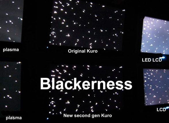 Il n’y a pas de « meilleures images ». Il y a seulement deux conjonctures : soit que l’écran peut reproduire fidèlement l’image telle que conçue par son créateur (que ce soit un directeur de film, un photographe ou un artiste graphique), soit pas. Étant donné que la base d’une image est le noir, et compte tenu que la technologie du plasma est la seule qui puisse fermer chaque pixel lorsque requis, lorsque l’on parle de précision de la reproduction d’images, le plasma s’avère en l’occurrence le seul choix. Il est vrai que la technologie ACL essaie maintenant d’avoir des zones d’éclairage arrières variantes pour pouvoir complètement éteindre les zones non requises créant ainsi l’illusion de noirs purs. Bien que la tentative est noble, souvenez-vous que l’on ouvre et ferme de multiples zones. Plusieurs ont plus de 30 zones, d’autres en ont des centaines de zones. Mais de toute façon, elles restent des « zones ». La technologie du plasma, et sa capacité de fermer des pixels individuels, peut ouvrir et fermer plus de 2 millions de « zones » individuelles. Quelque chose que jamais la technologie ACL ne pourra faire.