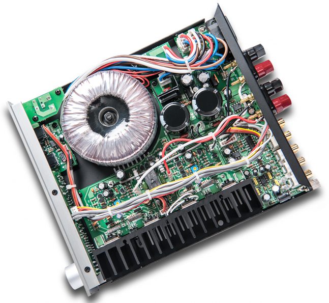 Techniquement, il est également sobre ce i100 de Mies avec une alimentation généreuse pouvant fournir 40 Watts par canal et ses circuits de préamplification à circuits intégrés. Le tout est bien réalisé et sérieusement pensé, car l’espace offert par le coffret est limité tout en arrivant à loger autant de composants, et surtout à installer une alimentation aussi sérieuse. Pas de critique à faire si ce n’est cette couleur bleue pour les diodes lumineuses qu’on pourrait avantageusement sous-alimenter par respect pour les amateurs qui n’écoutent pas toujours leur musique les yeux fermés.