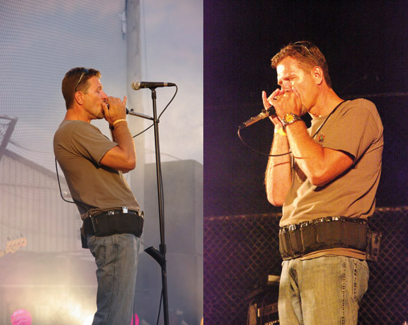 «J’ai remonté le temps en fouillant les origines du blues et ce qui se fait maintenant. Je me suis abreuvé de tout ça et me suis mis à écouter d’autres instruments. Parce qu’il faut savoir que si l’harmonica est relié au blues, le blues ne peut pas non plus se passer du saxophone, du piano, ou de la guitare. Et même si j’écoutais beaucoup les autres, j’ai développé mon propre phrasé, ma vibration personnelle. À un moment, ça devient comme un instinct, comme la respiration.» Christian Vézina découvre alors plusieurs grands harmonicistes, d’ici et d’ailleurs, comme Carl Tremblay au Bistro à Jojo, Guy Bélanger, Jim Zeller (une bête de scène !), J-J Milteau, James Coton, parmi d’autres, et il essaime les festivals de jazz et de blues. Et le téléphone sonne encore… « Une année, pour un spectacle de la Saint-Jean-Baptiste à Repentigny, devant une centaine de milliers de personnes, on m’a invité à faire partie d’un band qui faisait les premières parties avec des covers de Pagliaro, Okoumé, Plume et des Colocs, plusieurs années d’affilée. Et ça me faisait toujours bien paraître parce que j’avais une bonne place dans la section rythmique. Ça sonnait comme une tonne de briques ! »