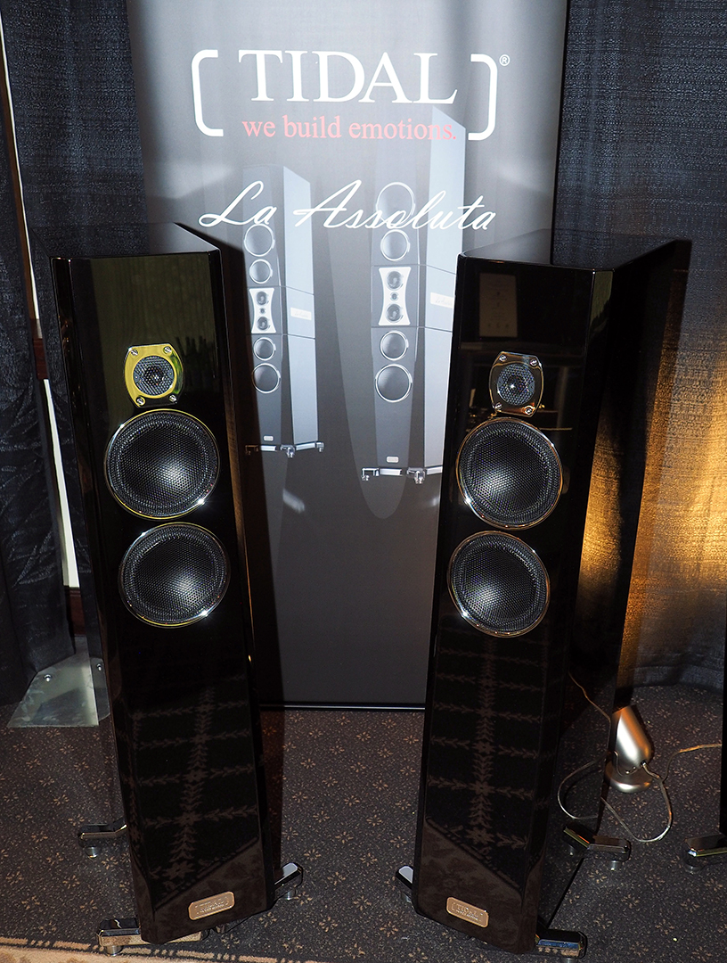 L’espace du distributeur Winn Audio avec les immenses enceintes allemandes Tidal et les somptueuses électroniques Golmund.