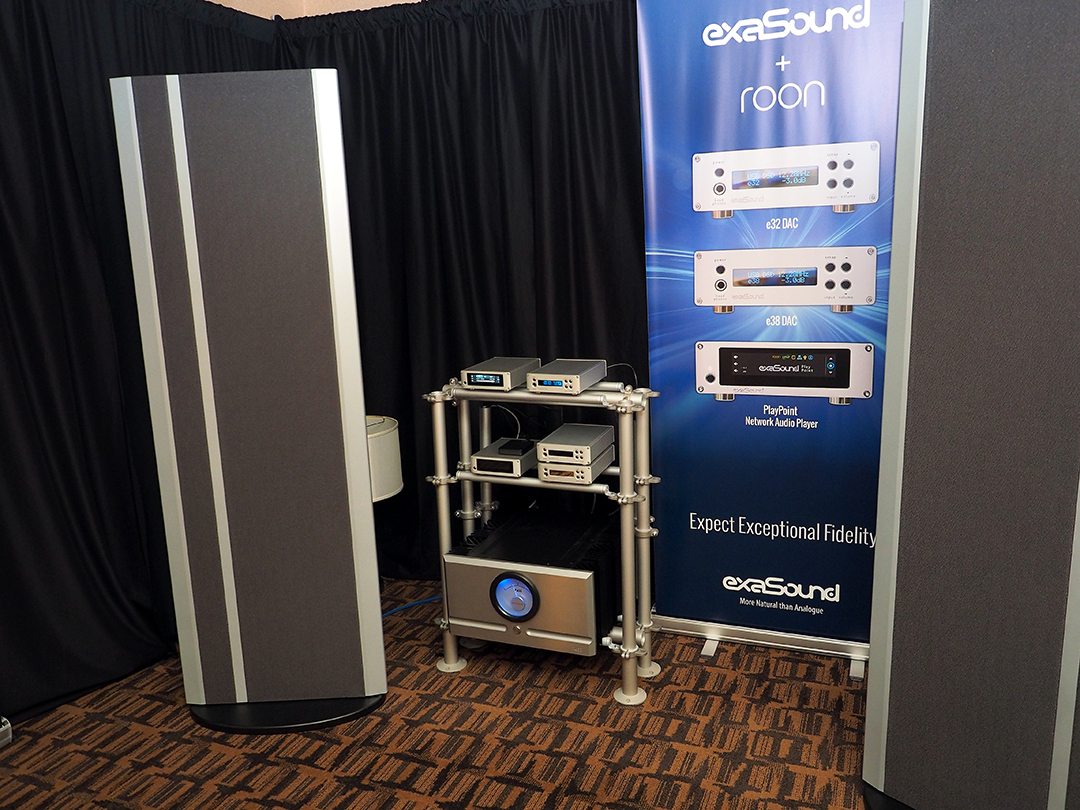 Les électroniques compactes exaSound conçues et fabriquées en Ontario. Ici, on les voit en démonstration avec un amplificateur Pass Labs et des panneaux Magnepan.