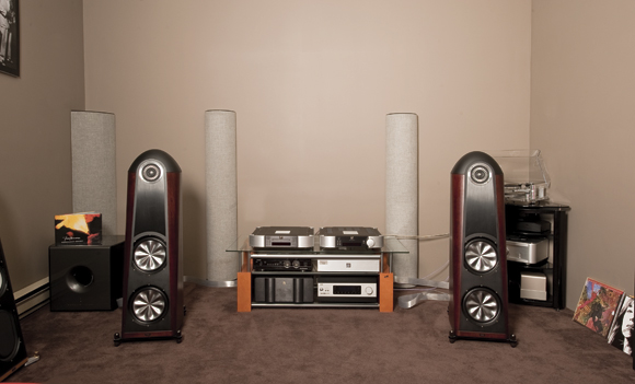 « Certains autres équipements sont également mis à la disposition du consommateur : amplificateur intégré IN 200 d’Atoll Électronique, des câbles Valhalla de Nordost, un caisson de basse Performance 9 de Mordaunt-Short, etc. »