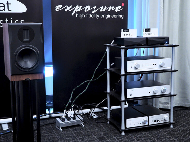 Dans la seconde pièce, on y présentait les électroniques Exposure dont le tout nouveau-tout beau amplificateur intégré, le 3510. Celui-ci alimentait, tour à tour, différentes enceintes de Neat Acoustics. Comme dans la pièce adjacente, le lecteur réseau était de chez Innuos et les câbles de chez Black Rhodium. L’Exposure 3510 en duo avec les enceintes Majistra de Neat, fut l’un des indéniables coups de cœur du public. J’en ai entendu que du bien de la part des visiteurs, et ce, un peu partout durant le week-end. Et avec raison, cet ensemble était parfaitement équilibré, avec des basses qui creusait tout en restant bien solides, un beau médium bien ouvert et des aiguës d’une grande douceur. Cet ensemble fut sans aucun doute le champion du rapport qualité-prix de ce salon. Ajouter à cela une équipe accueillante et sympathique, et vous avez la recette pour un succès bien mérité.