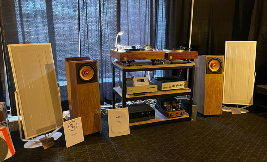 Le deuxième système utilisait l’étonnant amplificateur hybride TB-200 de Kora qui alimentait les panneaux électrostatiques DP-107 de Diptyque. Le rendu de cet ensemble avait une superbe articulation et une impeccable agilité. Ces petits panneaux Diptyque sont capables d’un raffinement inouï et l’amplificateur Kora les pilote avec une facilité déconcertante. C’est doux, détaillé et incroyablement facile à écouter. Définitivement mon coup de cœur pour cette édition du Salon Audio de Montréal 2022.