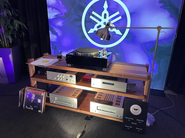 Une fois de plus cette année, l’équipe de Yamaha était fidèle au poste et accompagnée de celle de Luna Cables. La chaîne audio présentée comprenait l’ensemble des produits de la série 5000 dont l’incroyable platine GT-5000 ainsi que les fabuleuses enceintes NS-5000. Cette fois-ci, elles étaient pilotées par une paire d’amplificateurs M-5000 en configuration monophonique pontés. Comme à l’habitude, cette chaîne d’exception installée de main de maître, offrait des performances solides avec une image sonore bien large et un surprenant niveau de raffinement.