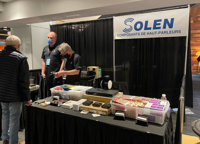 Le revendeur et fabricant de pièces électroniques Solen était présent avec un kiosque fort bien garni. À part les habituels condensateurs et inducteurs du fabricant, Solen présentait de nombreux produits de chez Dayton Audio et Mini DSP. La grande nouveauté chez Solen, c’est l’arrivée des produits KR Audio dont l’amplificateur VA880 venu de République Tchèque.