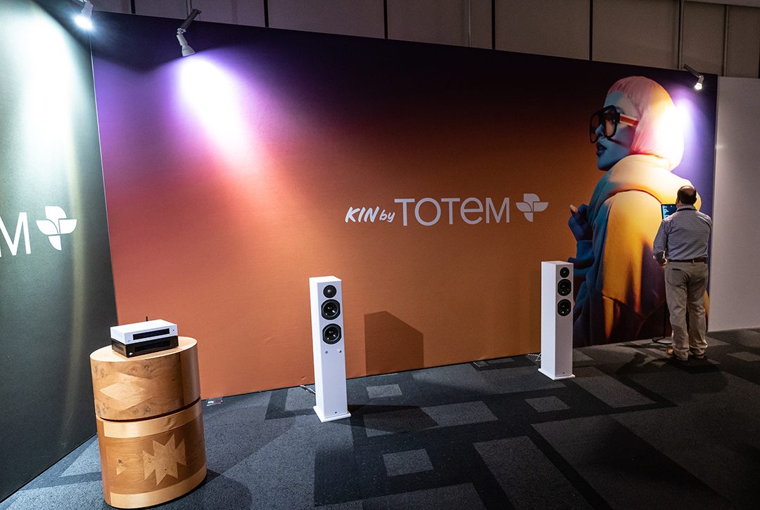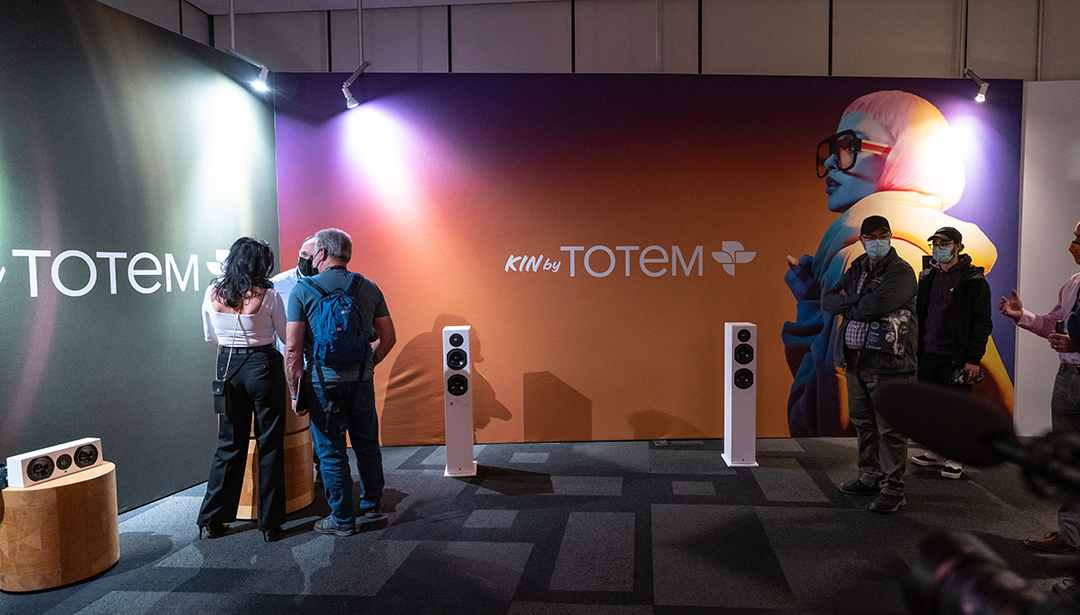 Comme toujours, le manufacturier Totem était de la fête avec deux salles aménagées avec un soin et un bon goût nettement au-dessus de la moyenne. Pour l’occasion, Totem présentait ses nouvelles enceintes autoportantes, les KIN Play Tower. Il s’agit d’une paire d’enceintes actives munies de sa propre amplification de 200 W, d’entrées analogiques, d’entrées numériques et commandés par une télécommande. Il y a même une entrée phono pour votre platine vinyle ! Vous pouvez dire adieu à votre vieux récepteur.